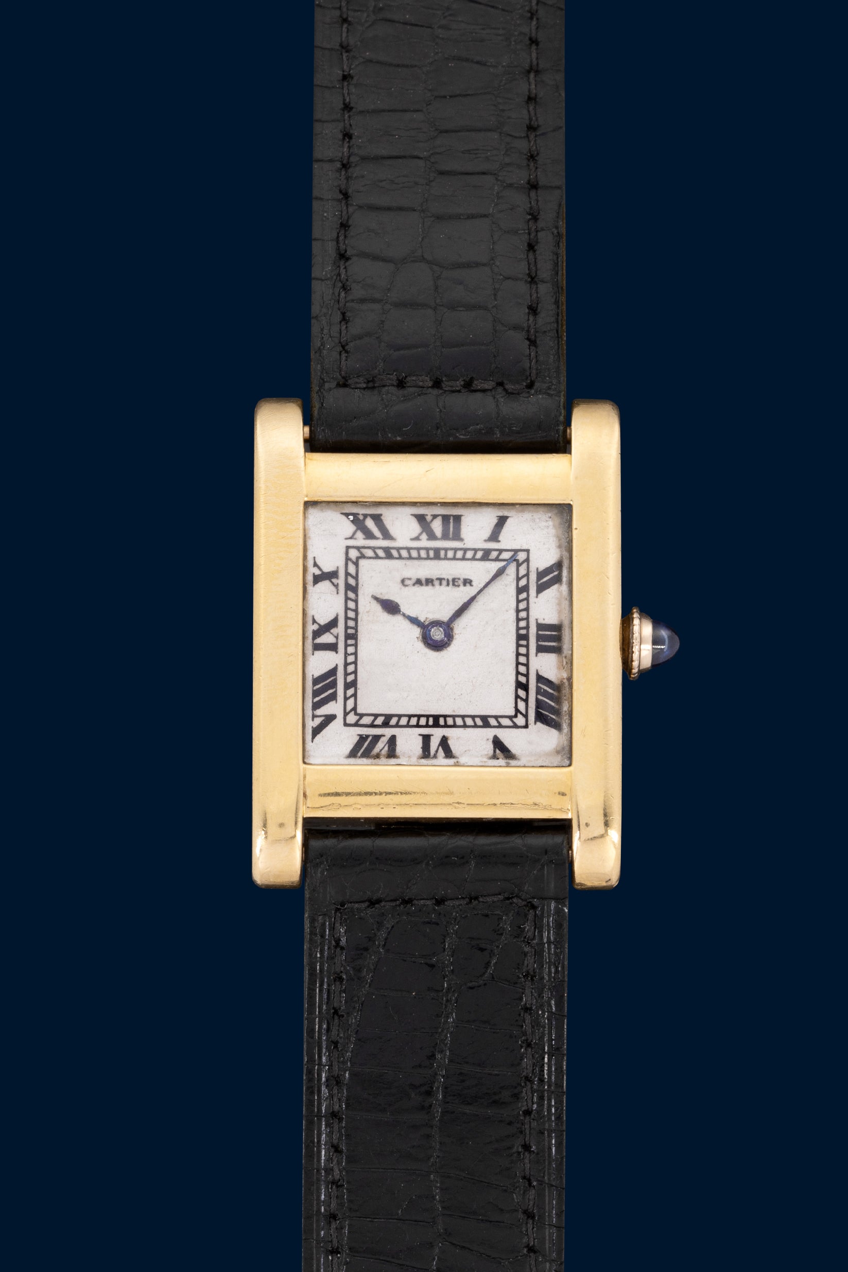 La montre se présente dans un état strictement d’origine, jamais modifiée ni restaurée, ce qui en fait une véritable pièce historique à caractère muséal. À l’origine conçue comme une montre d’homme, elle est équipée d’un mouvement European Watch Company, un élément particulièrement recherché par les collectionneurs et caractéristique des Tank Normale d’époque les plus désirables.