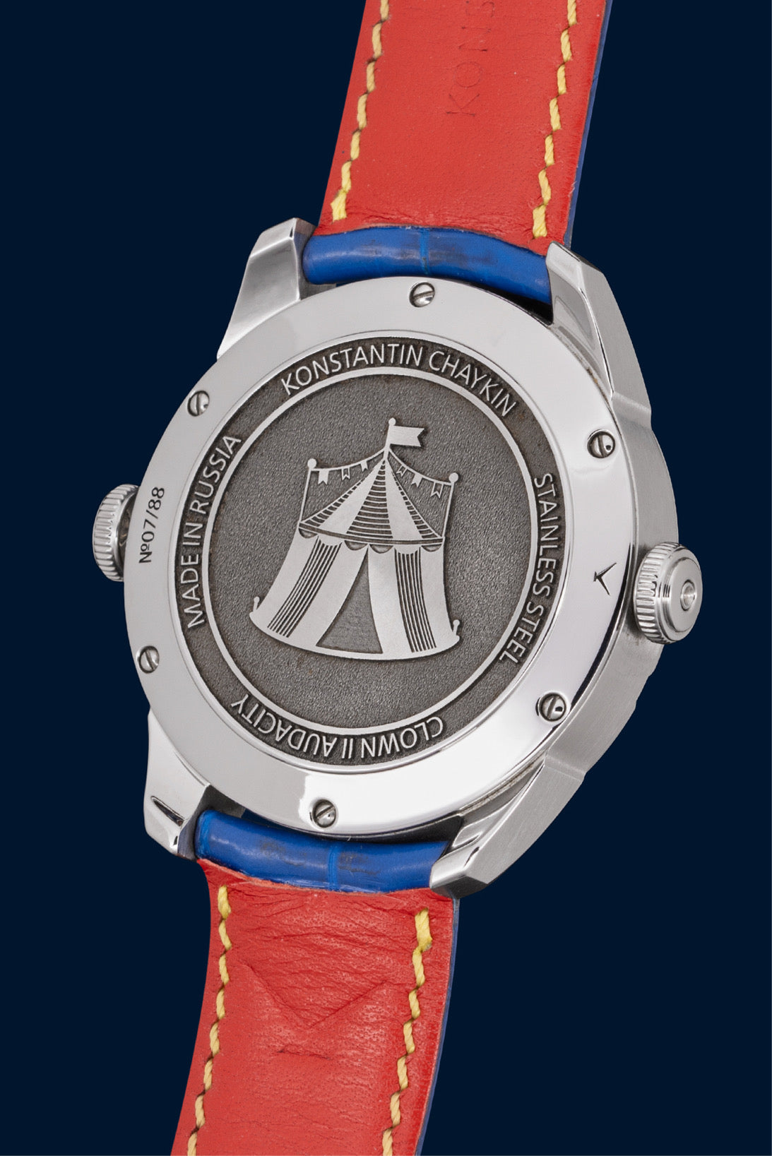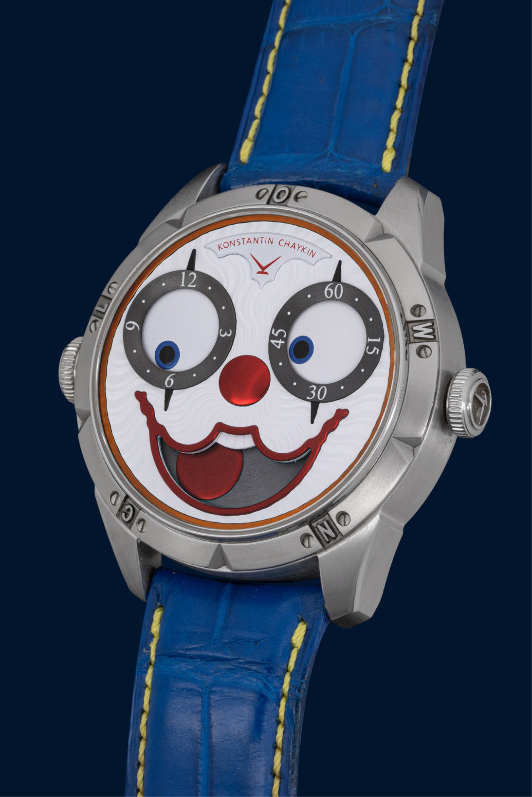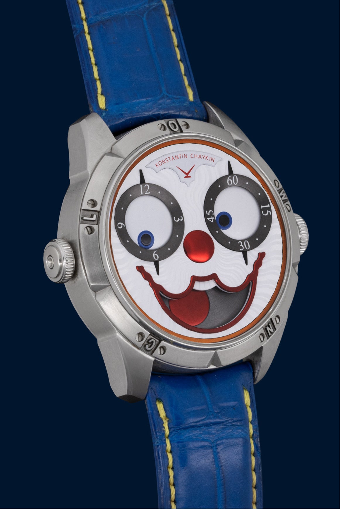 On t’avait dit que l’horlogerie pouvait être sérieuse ? Voici une preuve du contraire. La Clown II Audacity de Konstantin Chaykin est une pièce de collection qui te regarde avec un grand sourire (et deux yeux complètement déjantés). Cadran clownesque, langue pour l’indication lune, et un style que même le Joker validerait.