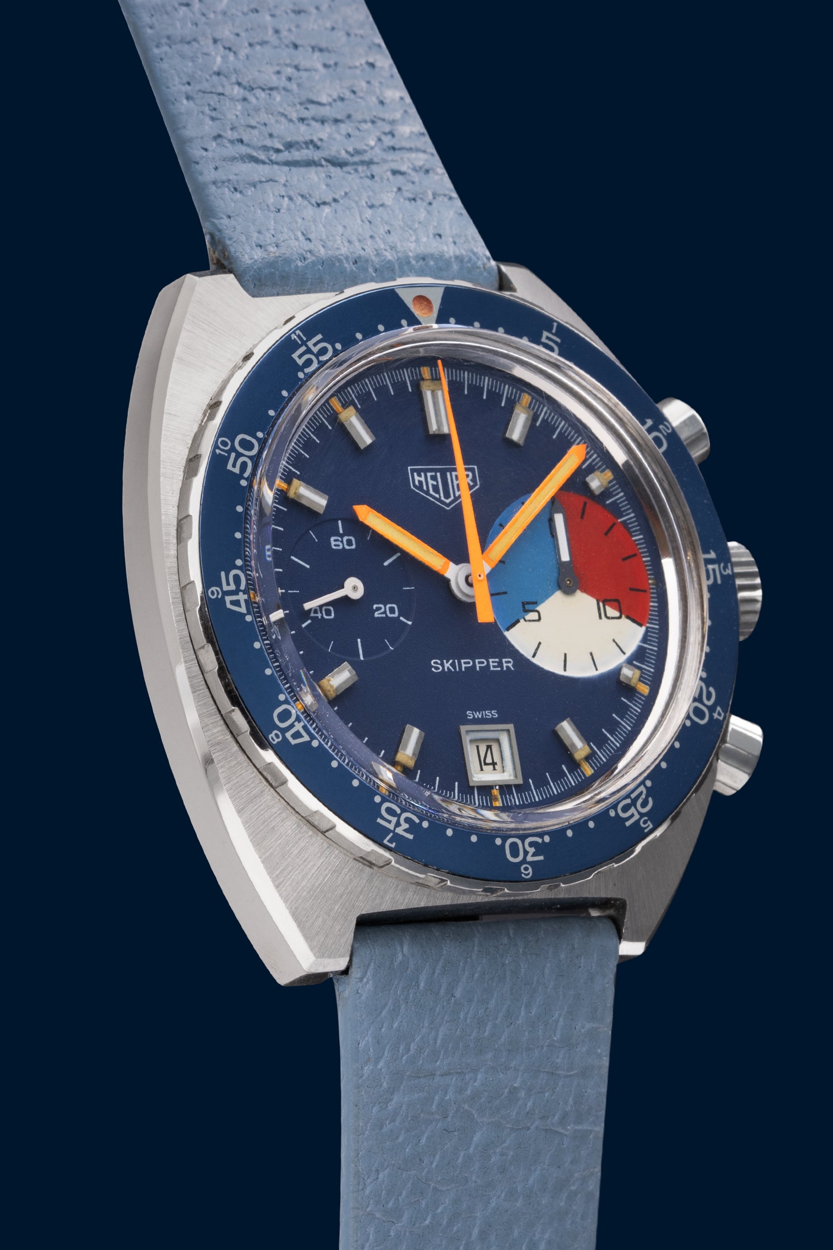 This third-generation Heuer Skipper holds a special place in Heuer's history as a chronograph specifically designed for regattas. Conceived as a true navigational instrument, the Skipper continues the tradition of tool watches developed by the brand for the world of nautical sports and competition.