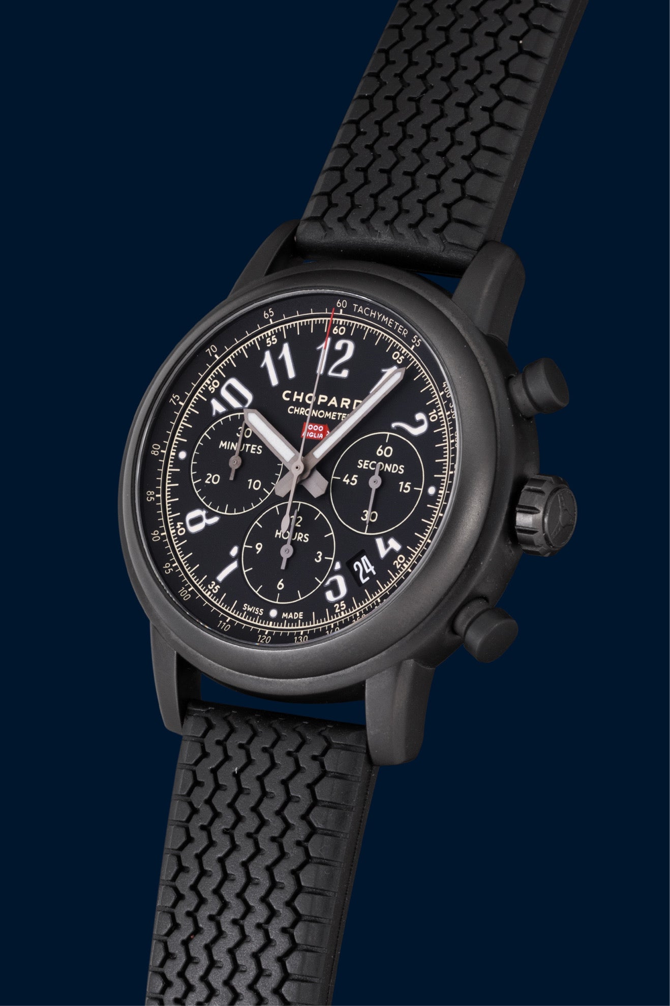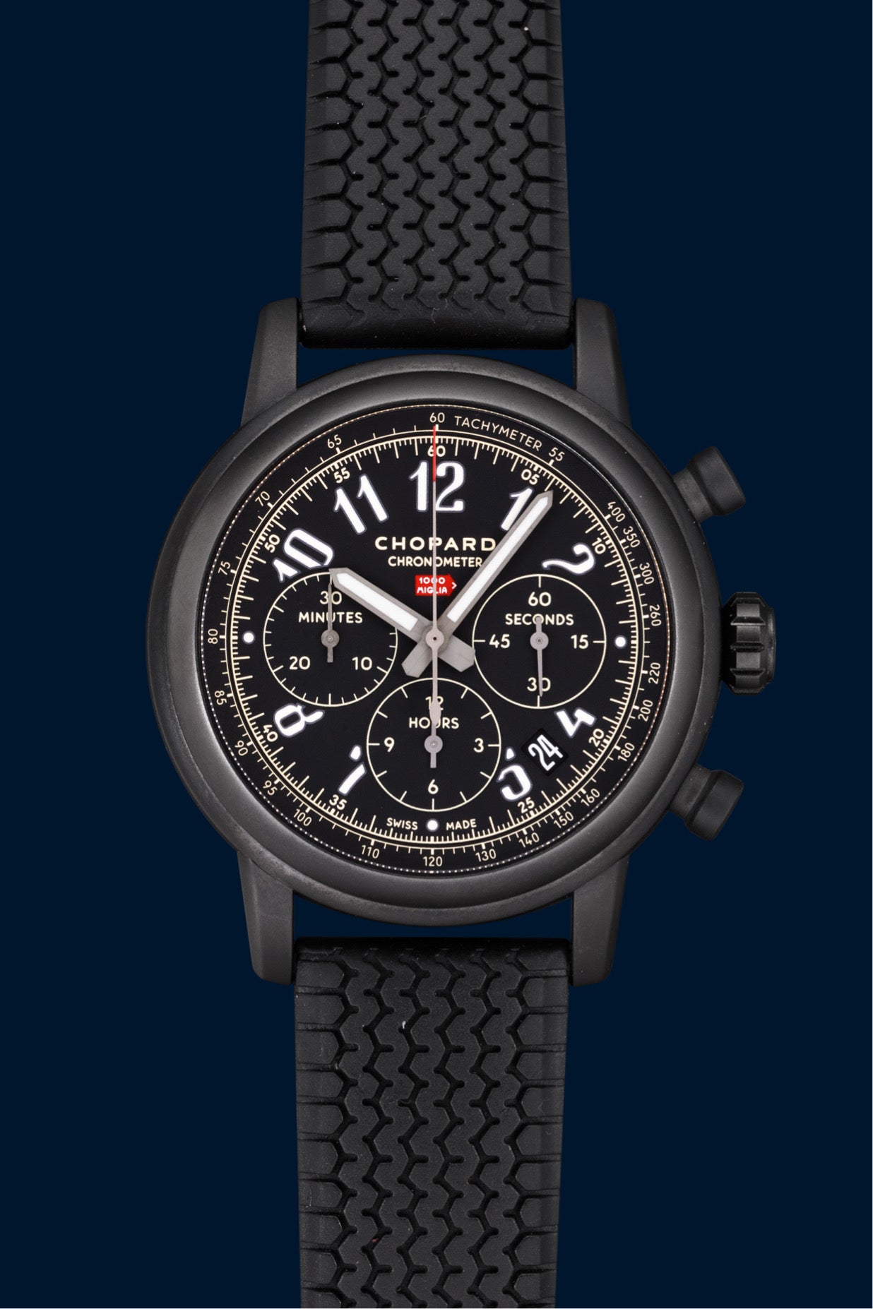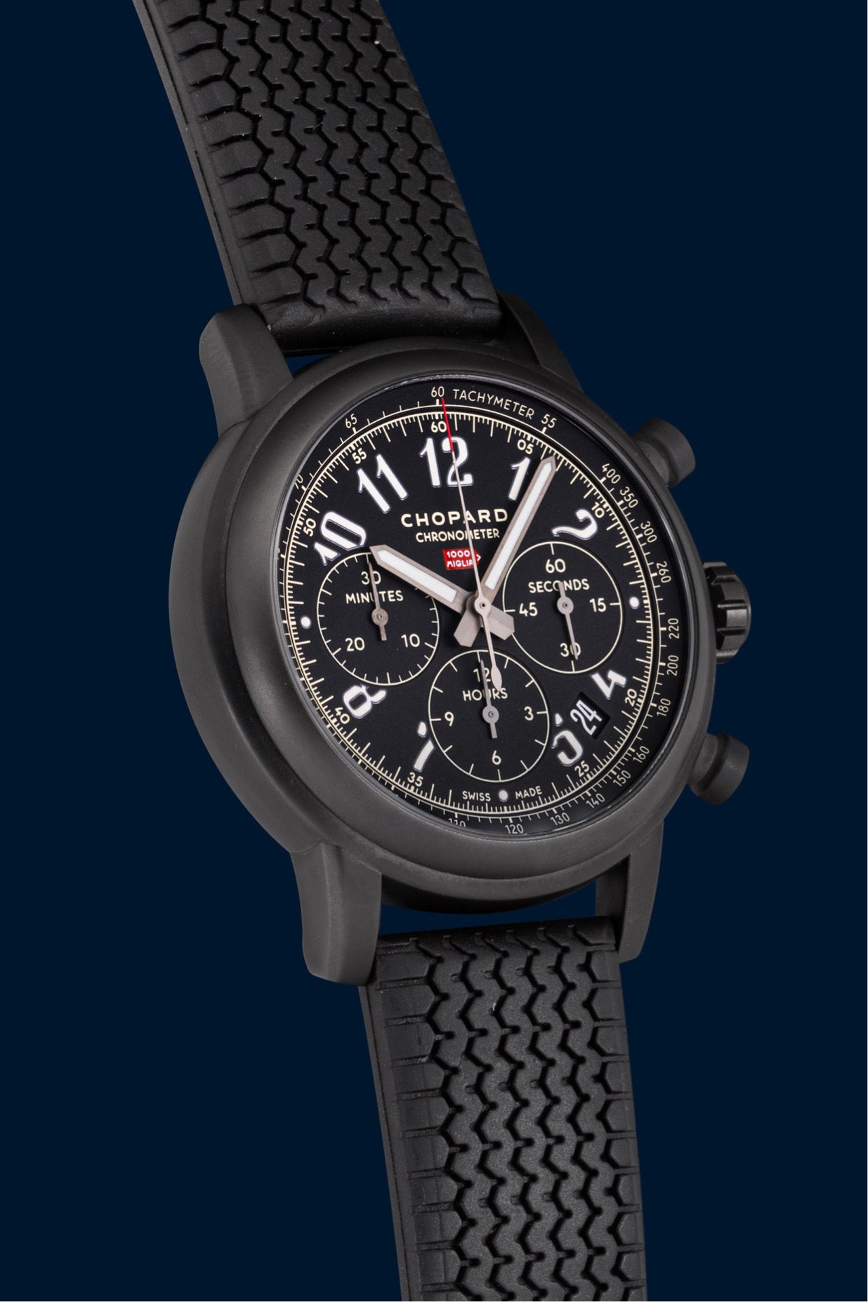 This Chopard Mille Miglia is part of the legendary collection inspired by the famous Italian Mille Miglia motor race, a historic event held until 1957 and now revived as a regularity rally. A true icon of automotive watchmaking, the Mille Miglia is considered one of the great classics of sports chronographs.