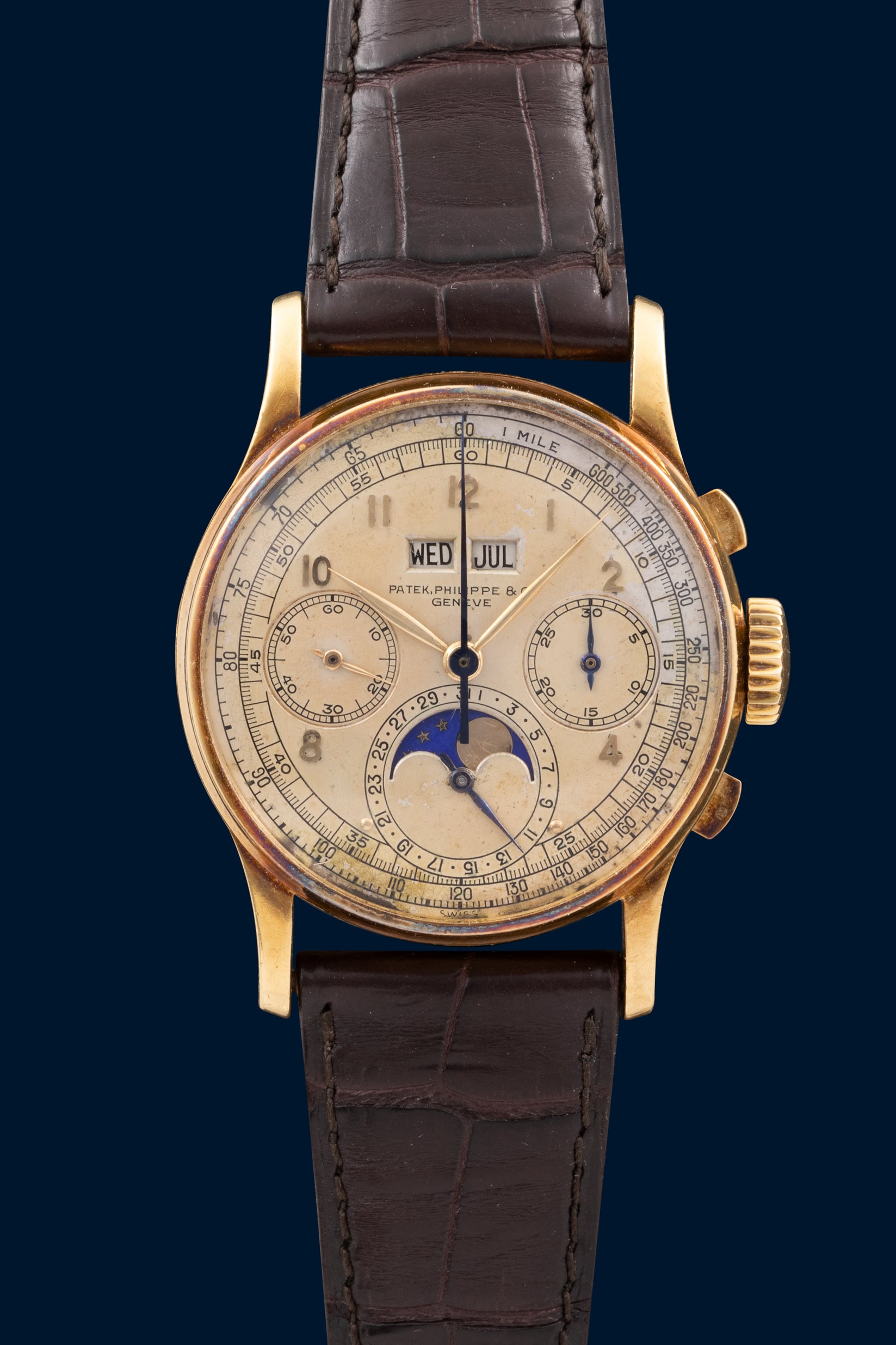 The 1518 is probably the most iconic watch from Patek Philippe. It was the first perpetual calendar chronograph produced in series. We've seen two steel examples exceed 15 million, and the rose gold versions reach 4 or 5 million. Today, if there's only one watch to buy in the world of collecting, it's a 1518. And if you buy one, you buy the most beautiful. And this one is clearly among the most beautiful yellow gold 1518s in existence.