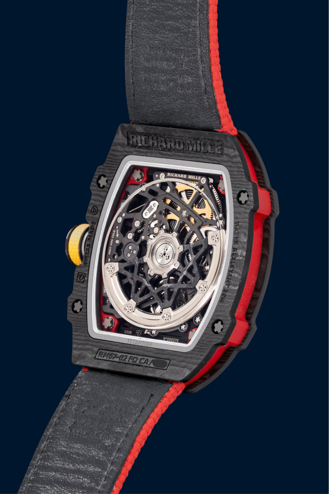 The RM 67-02 is made from materials directly inspired by Formula 1, notably highly advanced carbon composites. The result is spectacular: the watch weighs almost nothing on the wrist. Its surprising lightness almost gives the impression of an unreal object, while in reality it houses an impressive technological feat.
