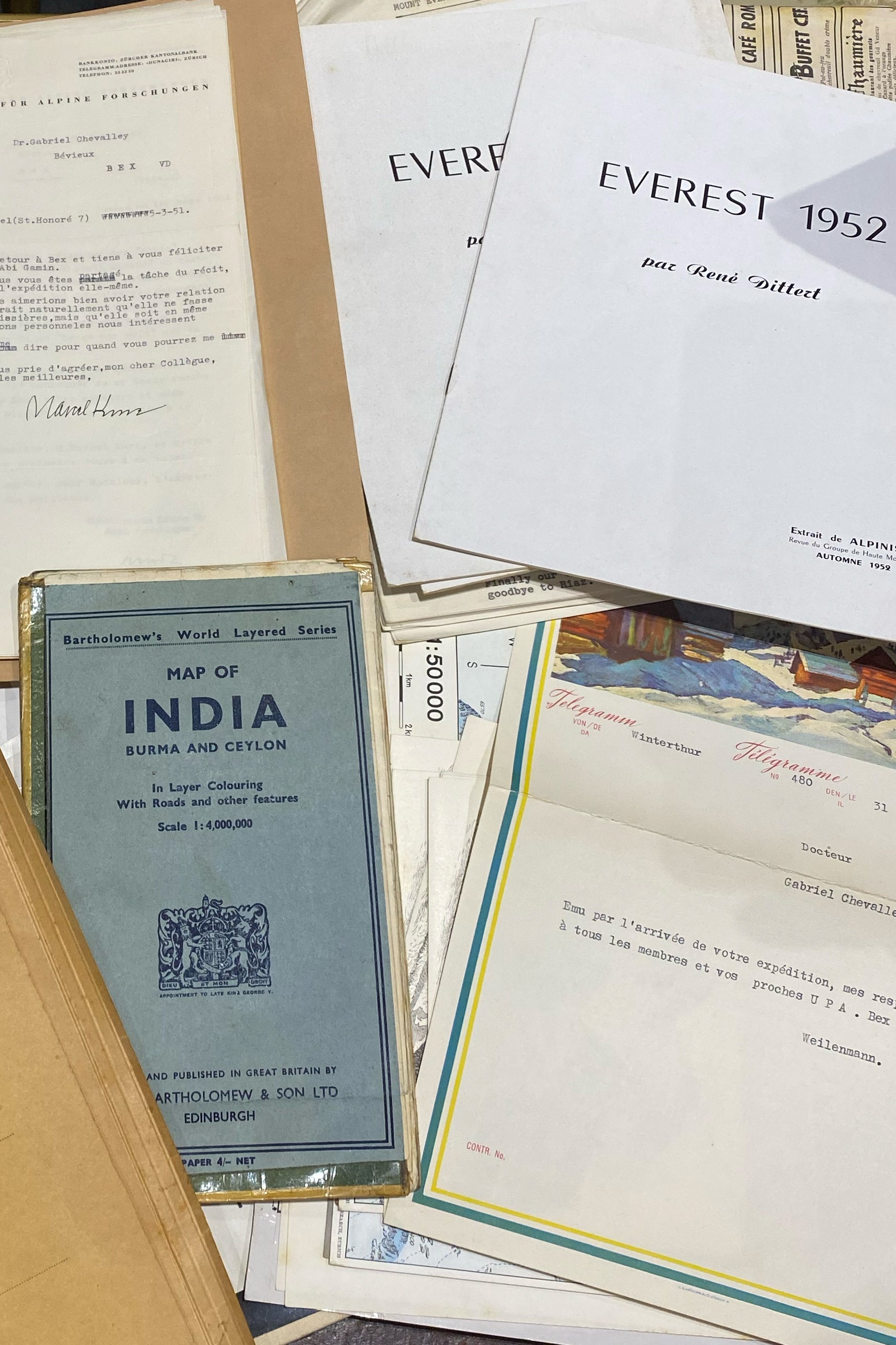 Its provenance is absolutely impeccable and unique. The watch comes from its first owner and is accompanied by the full archives of the 1952 expedition: climbing goggles, logbooks, period press clippings, ice axes, backpacks, as well as numerous documents and personal items directly related to this historic attempt. The collection is delivered with three full boxes of original documents, forming an extraordinarily rare historical corpus.