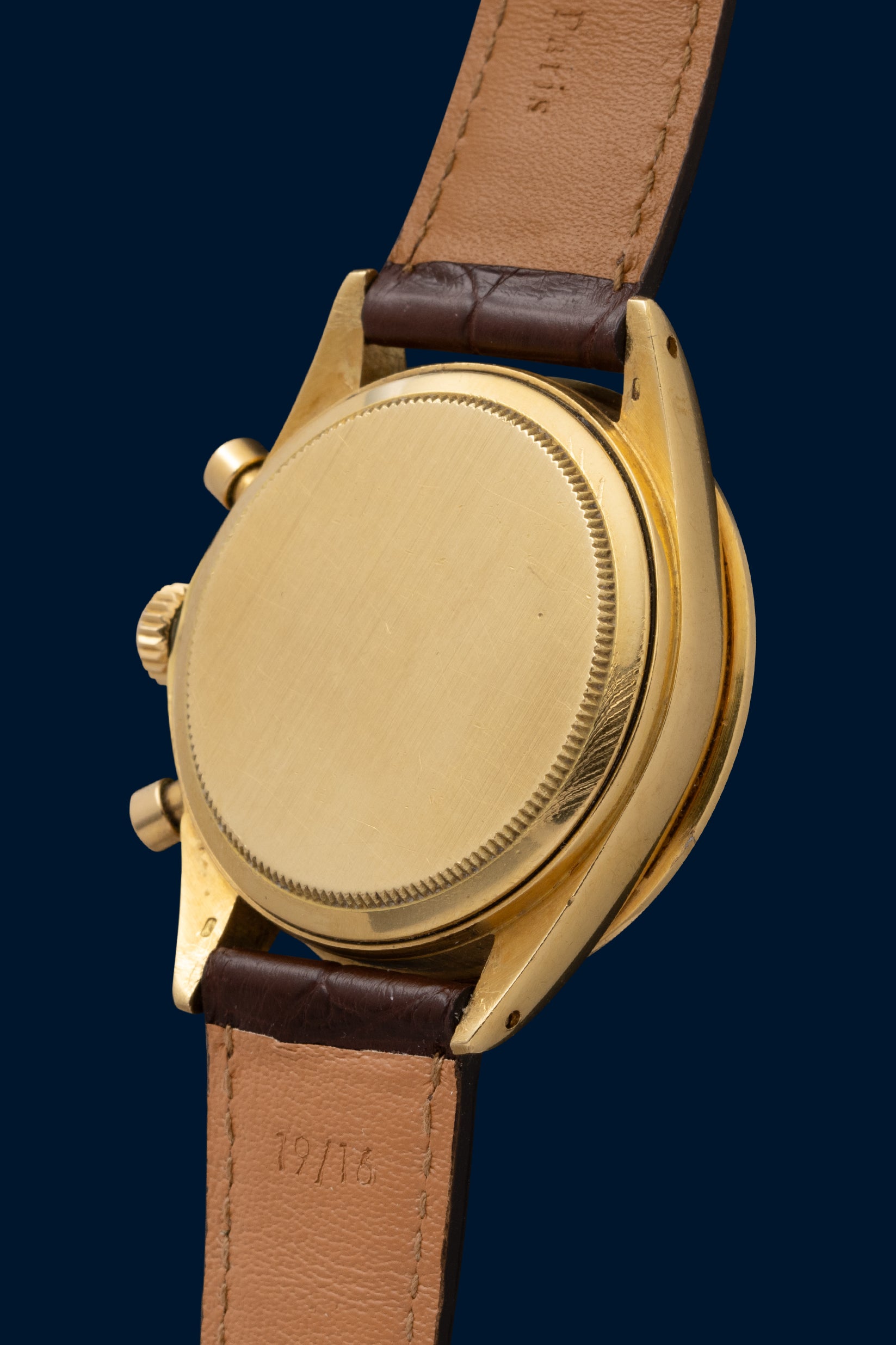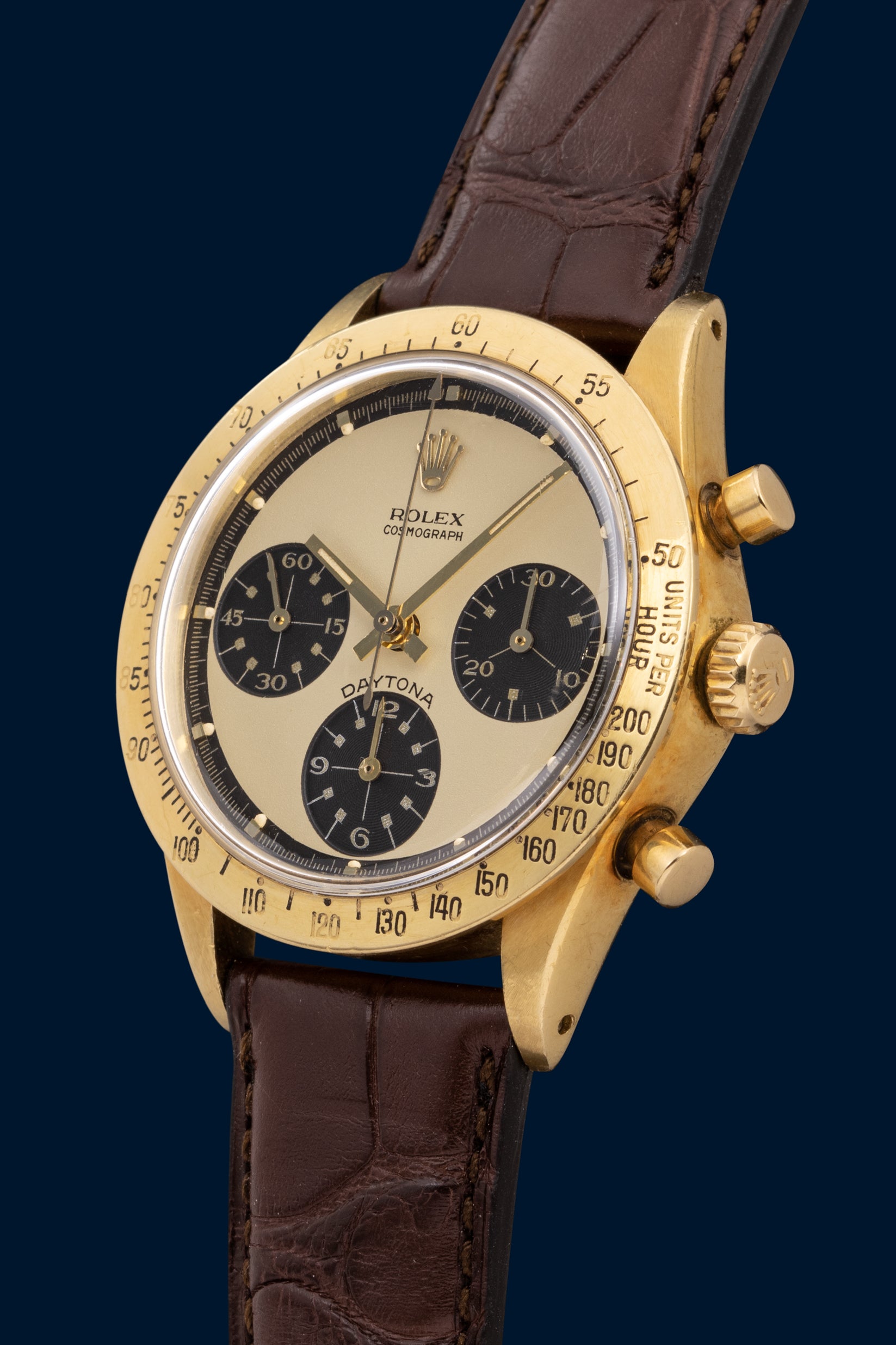 We're talking about a Rolex Daytona Paul Newman reference 6239, the very first generation of Paul Newman watches produced in gold. This version is considered the purest, the most original. It's the same 6239 model that Paul Newman wore in steel, but crafted in gold, in extremely limited quantities. The gold 6239 is, in fact, one of the least produced references in the entire Paul Newman family, which explains its absolute rarity.