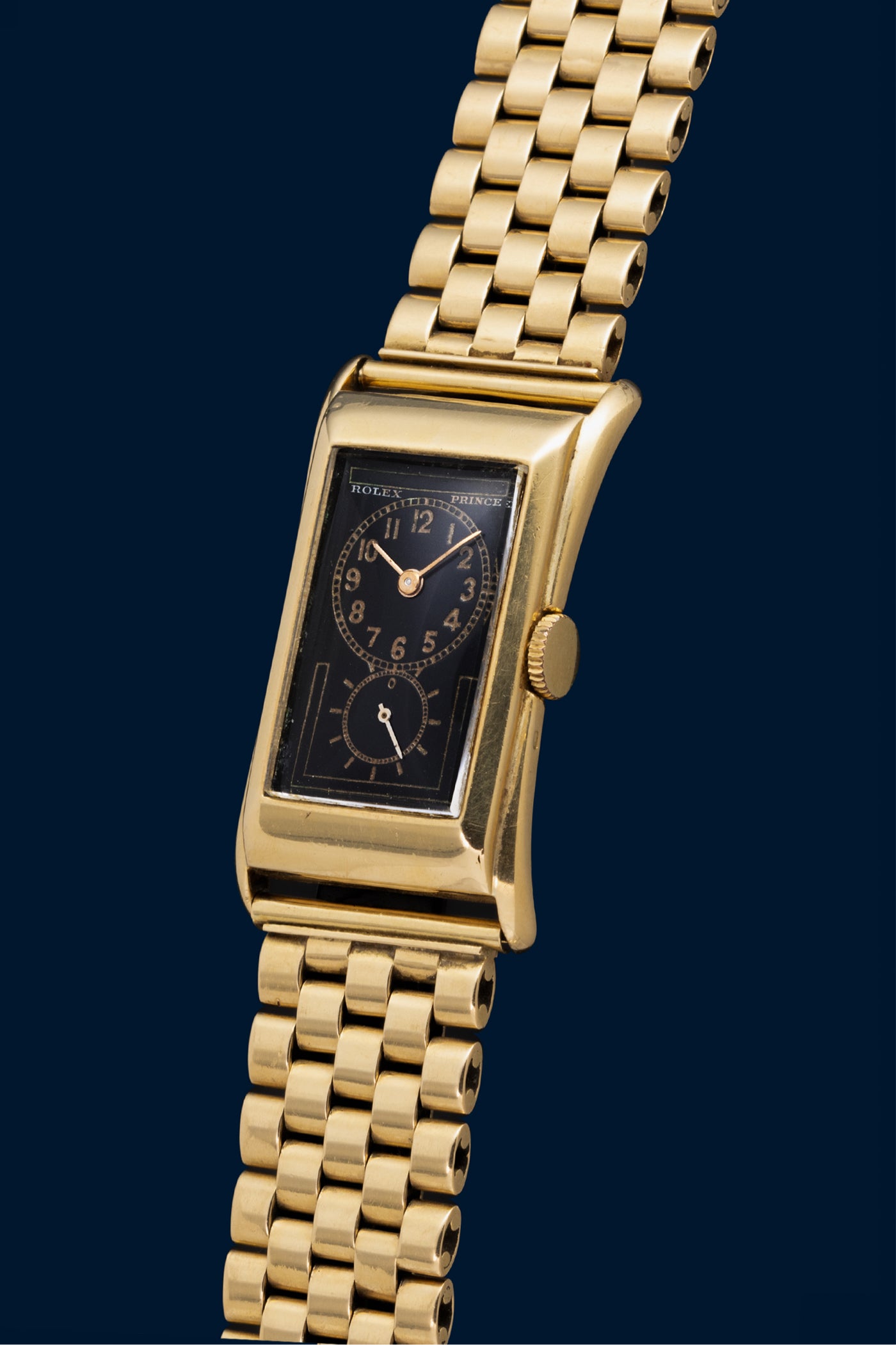 This 1930s Rolex Prince Brancard, with its stretcher-shaped case and wide lugs, is among the most iconic models produced by Rolex during the 1920s and 1930s.