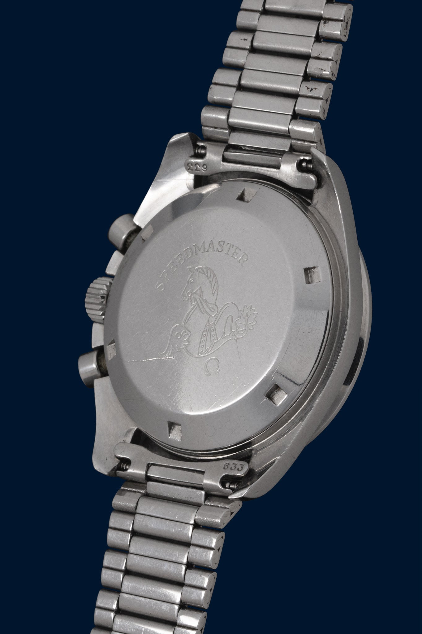 Magnifique et très rare Omega Speedmaster Moonwatch dite "Japan Racing" en acier sur son bracelet en acier référence 1039.